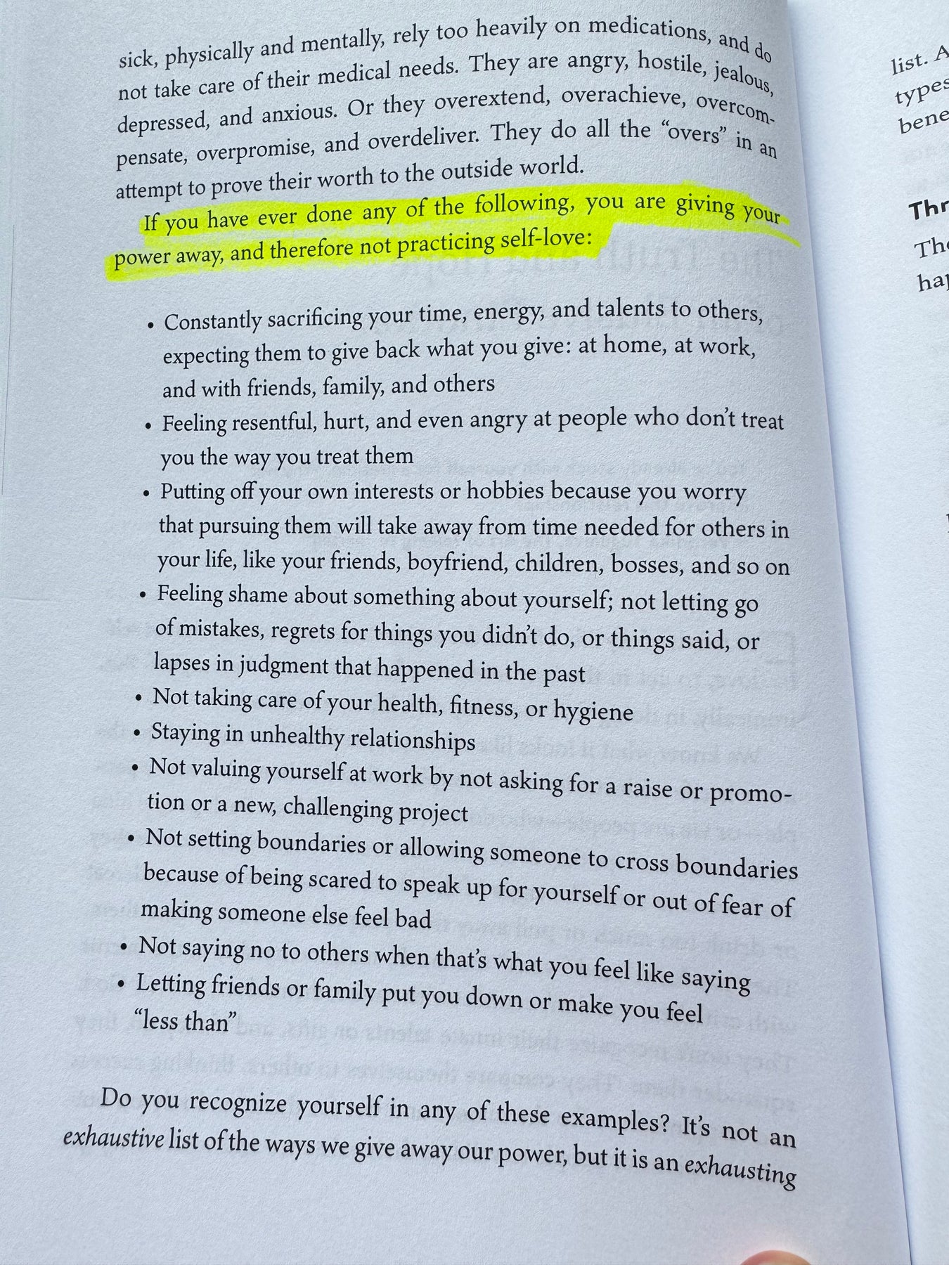 Life changing! This book opened my eyes to things I never considered that involved self-love. It was relatable and honest. It helped me to establish boundaries even though it was uncomfortable at first. Keeping it to refer back on.